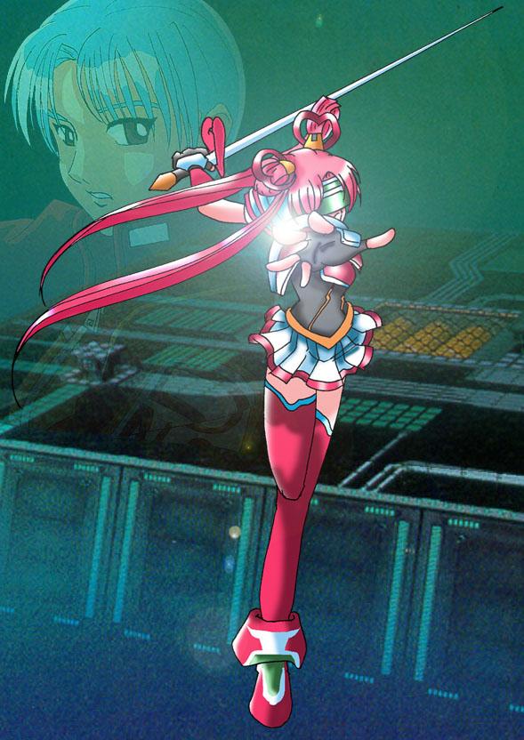 T: This is some really nice work. Just a sweet action shot, and neatly done. J: This is the leading female chara Takehito Elhaym Yukiko as appeared in Yuki-chan's VO fanfic. Long live the knight! |