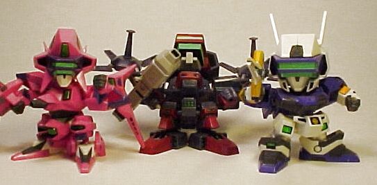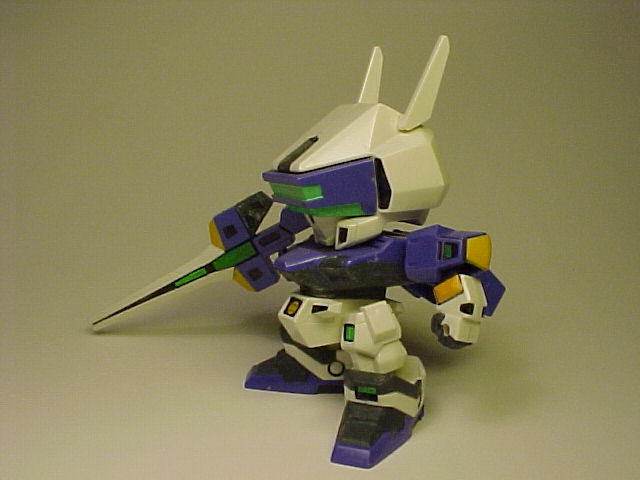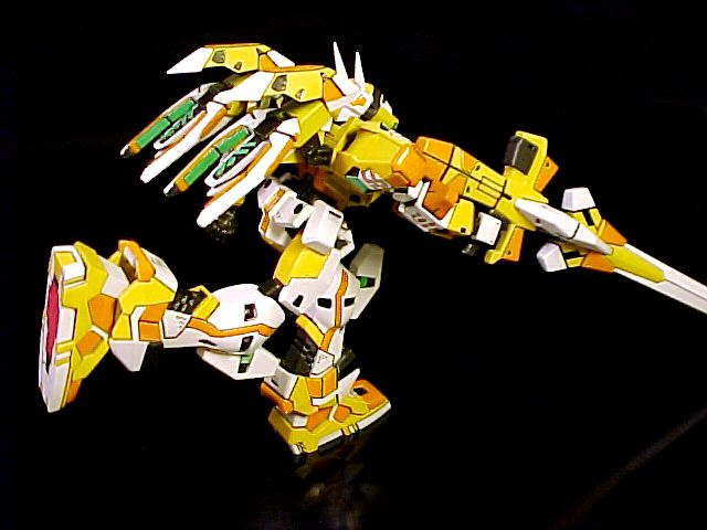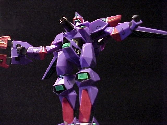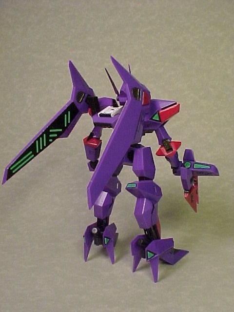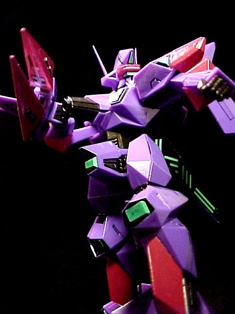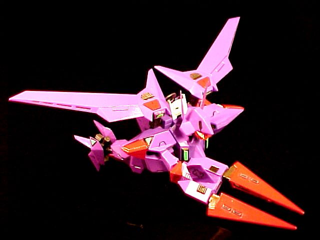 A highly finished kit that minimal sanding was required. The pink parts were painted with careful masking. I applied a white underpaint then covered it with a peach pink kinda color (which is a little darker than the original). The only decal applied was the inside of the multi-launcher and the crystals below the wings, since I couldn't think of an easy way to remake the details. Also tried to use Gunze's acrylic metallic colors with a paint brush. The black lines were a combination of gundam marker(thin black), Zebra oil-based sign-pen and Tamiya's thinnered ceramic paint. The crystal sensors were painted with the water-based Gundam marker (floroscent green). The purple areas were unpainted since I liked the original mold's color (also less hassle :P). The finished model was then sprayed with a layer of Mr.Clear (gloss) to immitate the reflective coating in high-end CGs. I'm pretty satisfied with the result.